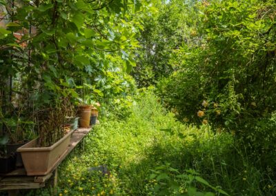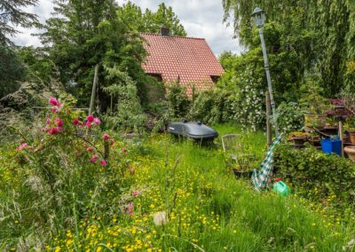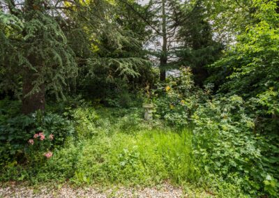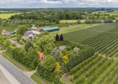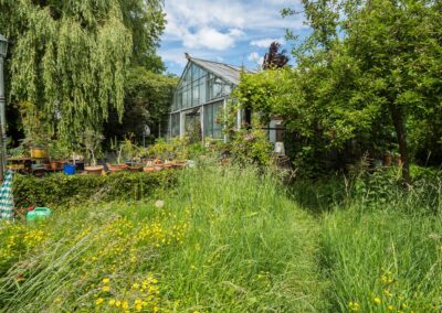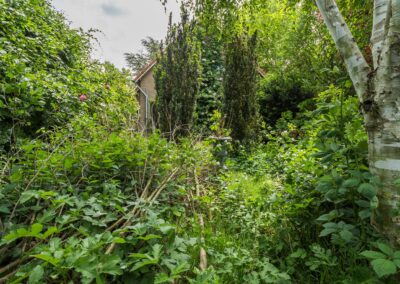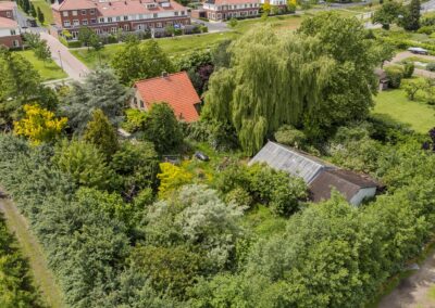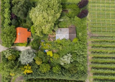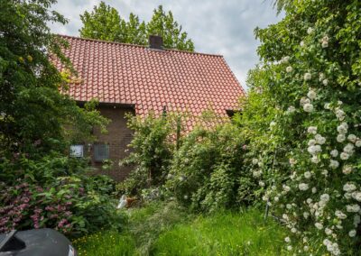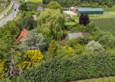 De riante tuin van meer dan 2.000 m² biedt genoeg ruimte om de tuin fraai aan te leggen of speelruimte te maken voor de kinderen en parkeermogelijkheden op eigen terrein. Er is een uitstekende zonligging maar ook schaduw/beschutting bij warme dagen door de verschillende (fruit-)bomen.