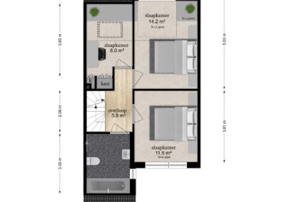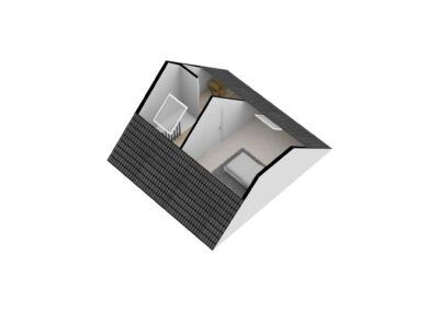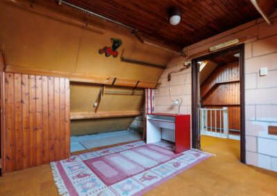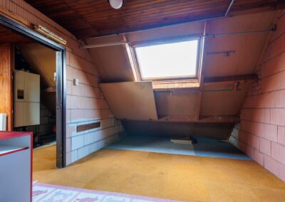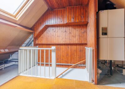 Overloop met toegang tot de 4e slaapkamer, cv, en bergingsruimte. Deze verdieping heeft ook een dakraam.