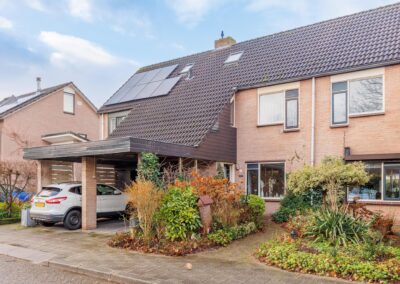 De ruime doorzonkamer zorgt voor een lichte woonkamer. De halfopen keuken is bereikbaar vanaf de woonkamer en hier zit tevens de toegangsdeur tot de achtertuin. De hal is voorzien van een toiletruimte en tevens onder de trap is er bergingsruimte aanwezig, wat ideaal is om voorraad in op te bergen. De woning heeft een woningoppervlakte van 116 m2, verdeeld over 3 woonlagen met totaal 3 slaapkamers en mogelijkheid om op de 2e verdieping een 4e slaapkamer te realiseren. Het huis is grotendeels geïsoleerd en heeft gedeeltelijk dubbel glas. Een carport, geschikt voor 1 auto. De tuin is gelegen op het noordwesten, hier is het fijn vertoeven met het tjirpen van de vogels op de achtergrond. Tevens is er een vrijstaande stenen berging aanwezig in de achtertuin, voorzien van elektra. Aangrenzend aan de achtertuin bevindt zich een speelhofje, ideaal voor kinderen om te spelen en om zelf een oogje in het zeil te kunnen houden. Om de hoek ligt het buitengebied van Leersum met de weilanden aan de Nieuwe Steeg en dichtbij landgoed Park Broekhuizen waar je heerlijk kunt wandelen.