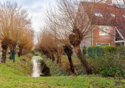 • Vrij uitzicht voorkant over groen strook en achter over hofje