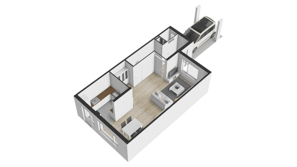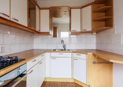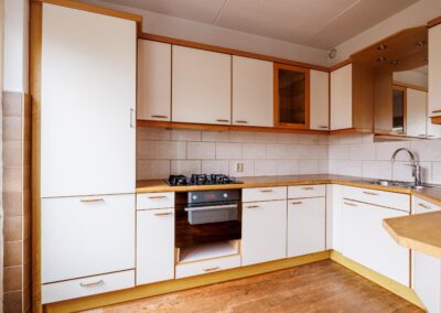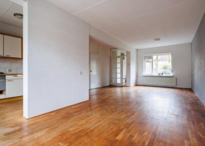 De woonkamer staat in directe verbinding met de halfopen keuken, waardoor er een open leefruimte ontstaat. Vanuit de keuken kun je via een deur zo de achtertuin inlopen — ideaal voor wie graag binnen en buiten met elkaar verbindt. Je kunt nog alle kanten op: van het moderniseren van de keuken tot het uitbreiden van de leefruimte. Deze woning is een plek waar je écht kunt bouwen aan je eigen ideeën en een thuis kunt maken dat volledig bij jou past.