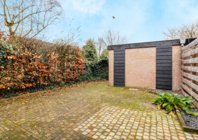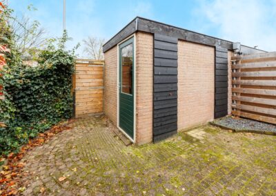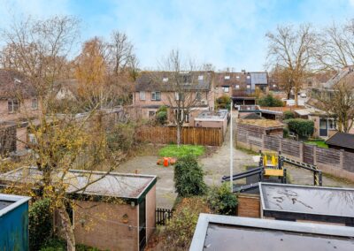 Tevens is er een vrijstaande stenen berging aanwezig in de achtertuin, voorzien van elektra. Aangrenzend aan de achtertuin bevindt zich een speelhofje, ideaal voor kinderen om te spelen en om zelf een oogje in het zeil te kunnen houden. Er is veel groen om de woning en aan het einde van de straat ligt het buitengebied van Leersum met de weilanden aan de Nieuwe Steeg en dichtbij landgoed Park Broekhuizen waar je heerlijk kunt wandelen.