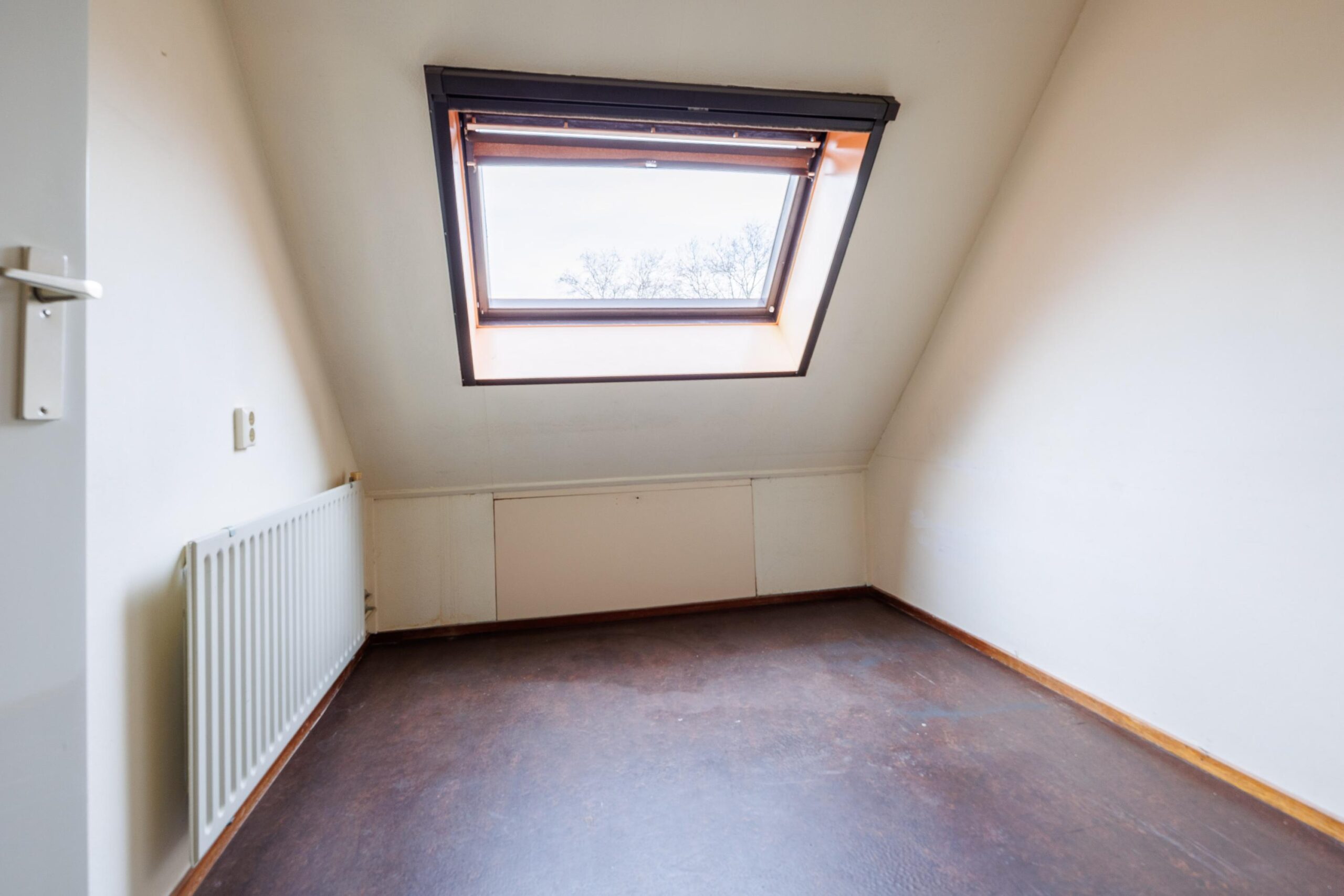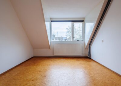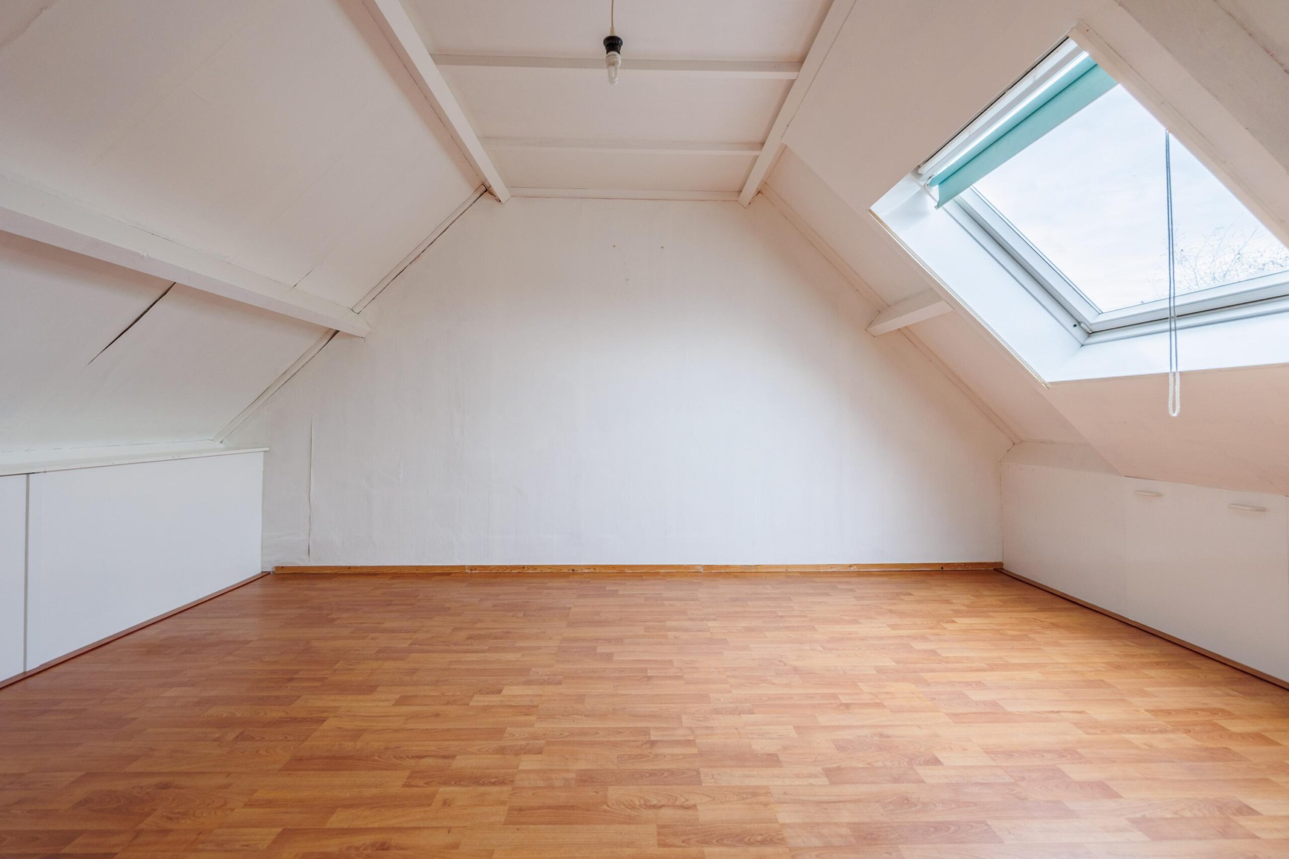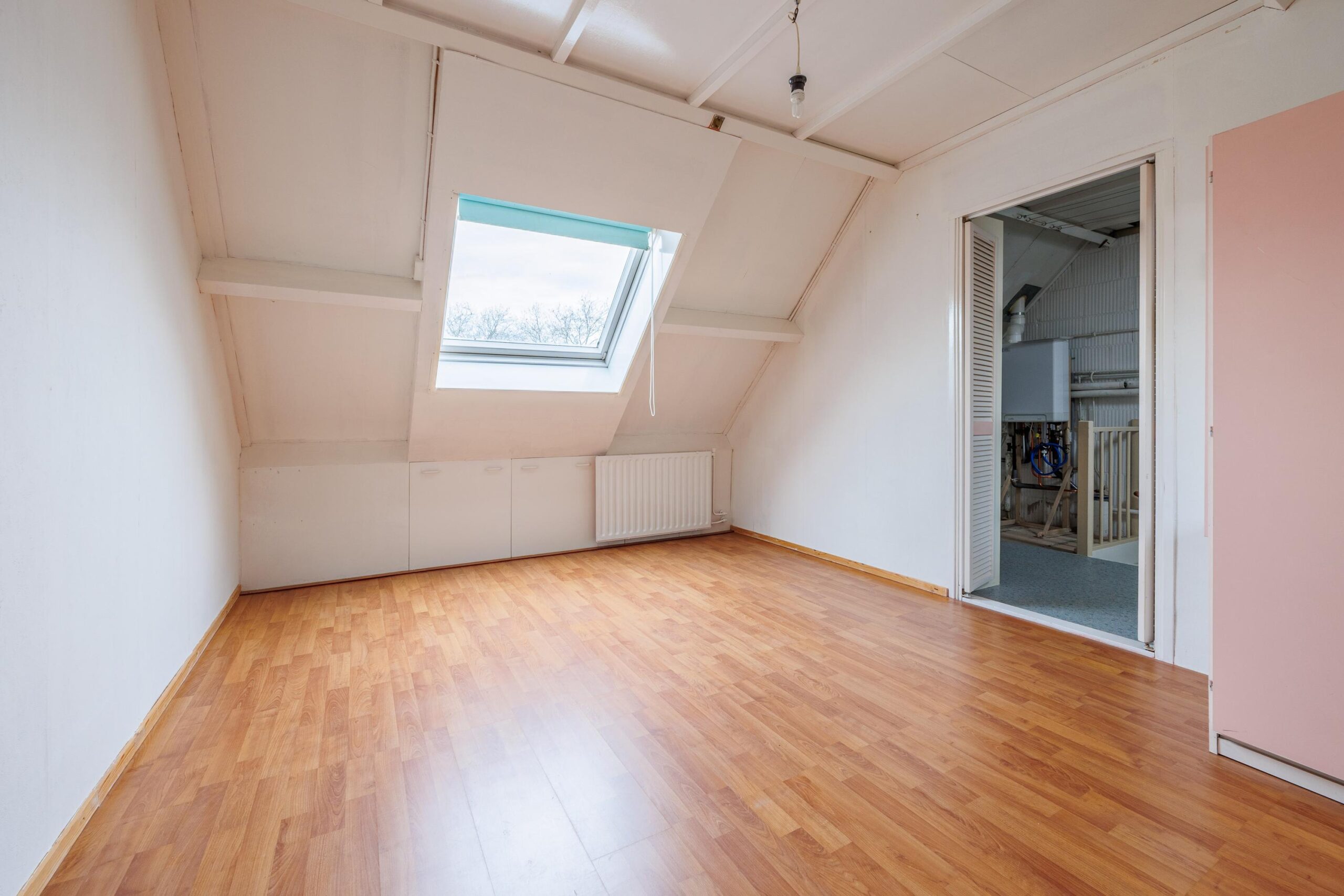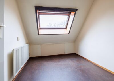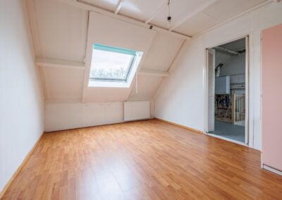Overloop met toegang tot de vierde slaapkamer met dakraam, cv-ketel, en wasruimte. De slaapkamer is tevens voorzien van ingebouwde knieschotten waardoor er veel ruimte is voor opslag. Beschikt ook over een vliering.