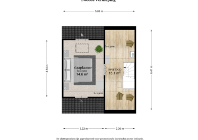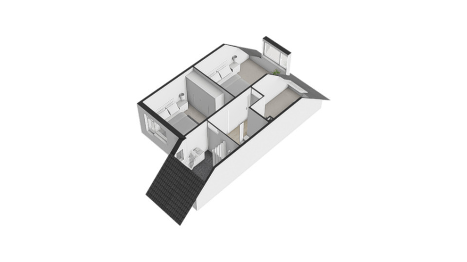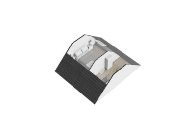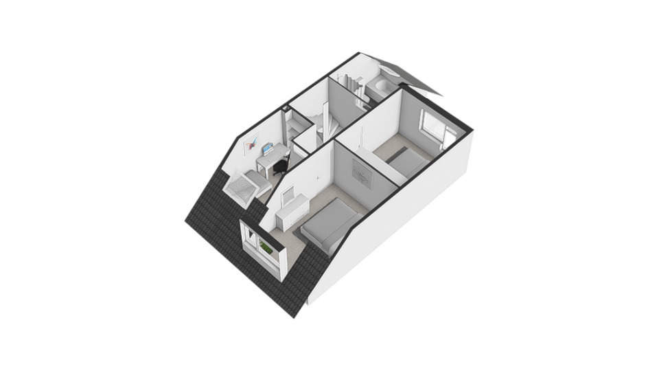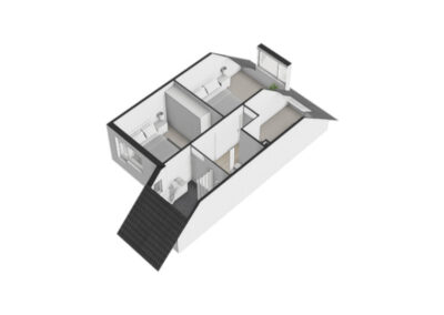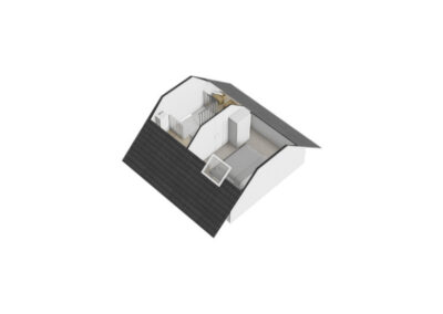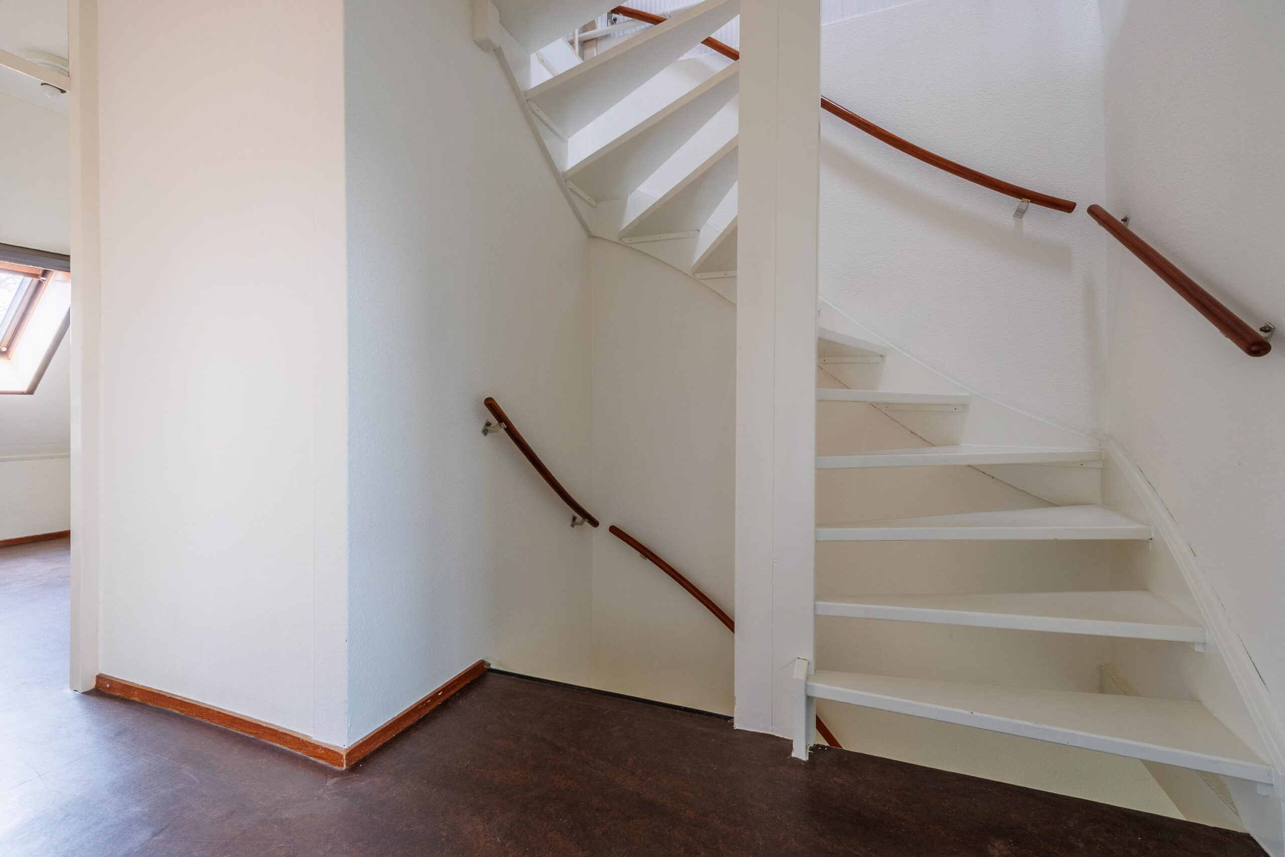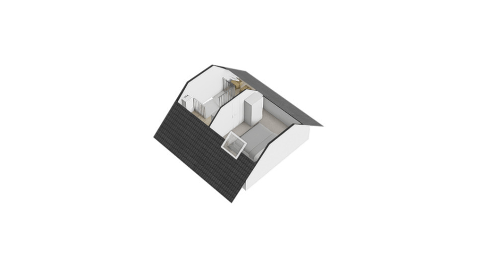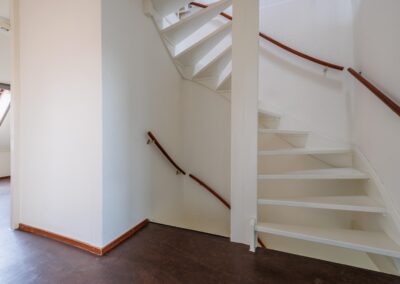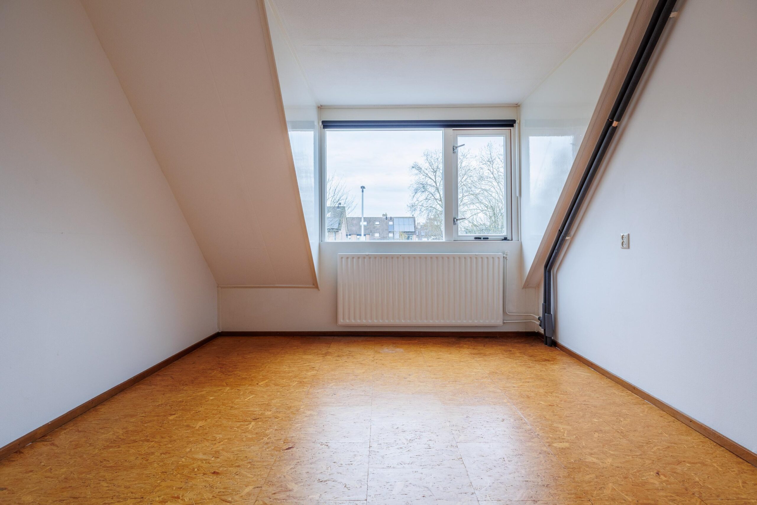 Overloop met toegang tot de vierde slaapkamer met dakraam, cv-ketel, en wasruimte. De slaapkamer is tevens voorzien van ingebouwde knieschotten waardoor er veel ruimte is voor opslag. Beschikt ook over een vliering.