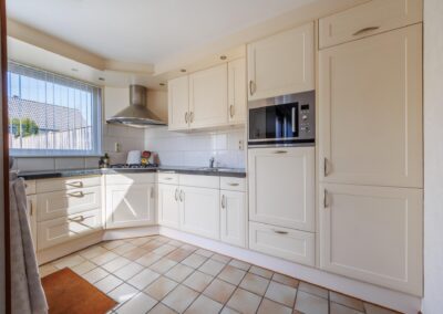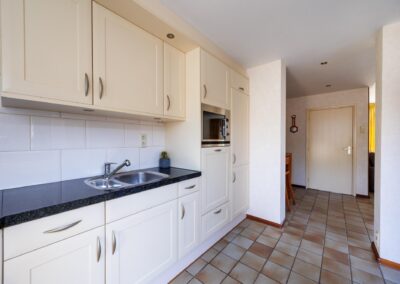 De keuken is uitgebouwd en praktisch ingedeeld en is voorzien van onder andere een koel-vriescombinatie, vaatwasser en voldoende opbergruimte.