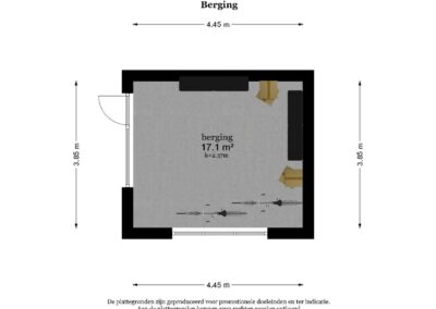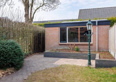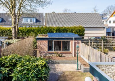 De achtertuin op het noordwesten is een heerlijke plek om te ontspannen. Achterin de tuin staat een vrijstaande berging die veel mogelijkheden biedt. Naast opslag voor (elektrische) fietsen en tuinspullen is deze berging ook uitstekend in te richten als hobbyruimte of werkplek. Bovendien is de berging voorzien van 6 zonnepanelen die zorgen voor lagere energiekosten.