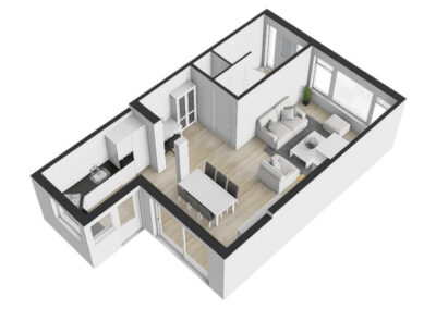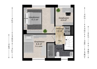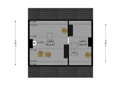 Met een woonoppervlak van in totaal 84 m² beschikt de woning op de eerste verdieping over drie slaapkamers. De vlieringszolder biedt uitbreidingsmogelijkheden – door het plaatsen van een vaste trap en een dakkapel creëert u eenvoudig een vierde slaapkamer en meer woonoppervlakte.