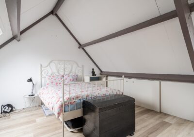 Overloop met toegang tot de ruime open zolder van 22,1 m² met dakramen. Hier kan eventueel een 4e slaapkamer gerealiseerd worden. Goede lichtinval door de 2 nieuwe Velux dakramen.