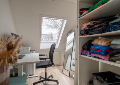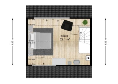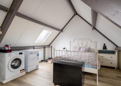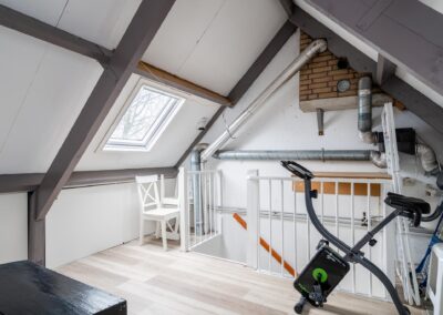 Overloop met toegang tot de ruime open zolder van 22,1 m² met dakramen. Hier kan eventueel een 4e slaapkamer gerealiseerd worden. Goede lichtinval door de 2 nieuwe Velux dakramen.