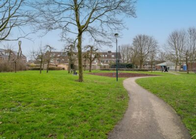 De achtertuin is stijlvol vernieuwd en ingericht met een heerlijk terras, gepotdekselde schuttingen en fraaie bestrating. Er is een stenen berging aanwezig en een achterom. Voor kinderen ideaal met veilige paden richting speelveldjes en de kinderboerderij!