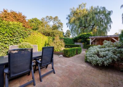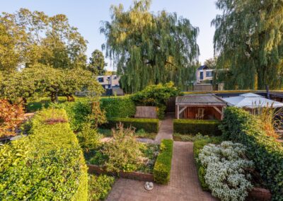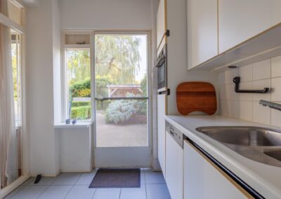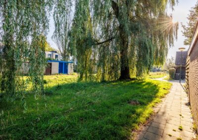 Met een woonoppervlakte van 117 m², verdeeld over drie woonlagen, beschikt de woning over drie slaapkamers (extra slaapkamer is mogelijk). De royale woonkamer is licht dankzij de grote raampartijen. De keuken, uitgerust met inbouwapparatuur en opbergruimte, grenst aan de woonkamer. Via de keuken heeft u toegang tot de achtertuin, die op het noordoosten is gelegen. Kies ervoor om lekker in de zon te zitten, of heerlijk onder de veranda! Aan zowel de voorzijde- als de achterzijde van de woning bevindt zich een groenperk met bomen, waardoor u weinig tot geen inkijk in uw achtertuin heeft en heerlijk beschut zit tussen het groen. In de achtertuin vindt u ook de vrijstaande stenen berging van ongeveer 8 m², ideaal om bijvoorbeeld uw (elektrische) fietsen te stallen en/of uw tuingereedschap. De achtertuin is afwijkend, groter en breder dan de andere aangrenzende woningen.