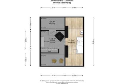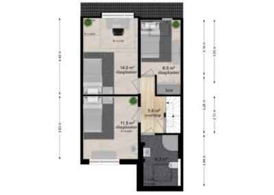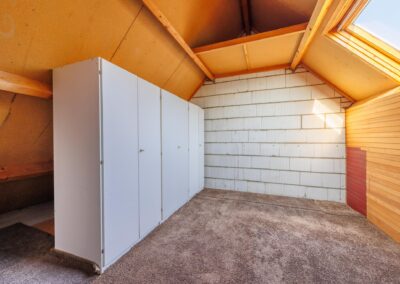 De master-bedroom op de eerste verdieping beschikt over een dakkapel en royale 2e slaapkamer aan de voorzijde. De 3e slaapkamer op de eerste verdieping beschikt over een dakraam. Op de tweede verdieping is een 4e slaapkamer gemakkelijk te realiseren, er is hier ook een dakraam aanwezig. Ook is er op deze verdieping voldoende opbergruimte.