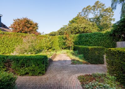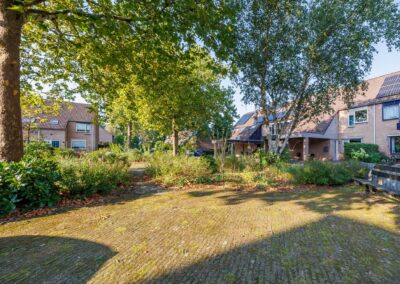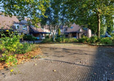 Aan de voorkant heeft u uitzicht over een groen gezellig hofje, het is een doodlopend hofje. Nabijgelegen is ook een speelhofje voor kinderen. Om de hoek vindt u het buitengebied van Leersum met weilanden aan de Nieuwe Steeg en het nabijgelegen landgoed Parc Broekhuizen, waar u heerlijk kunt wandelen.