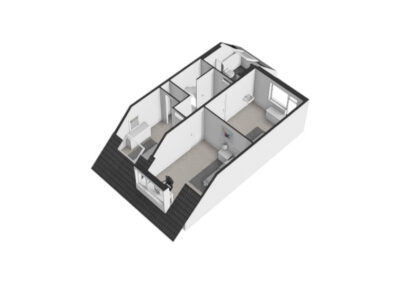 Overloop met toegang tot een te realiseren 4e slaapkamer met dakraam, cv en wasmachine ruimte.