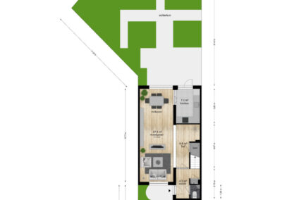 • Extra royale achtertuin (extra breed) gelegen aan groenstrook
