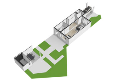 • Vrijstaande stenen berging met overkapping in de achtertuin