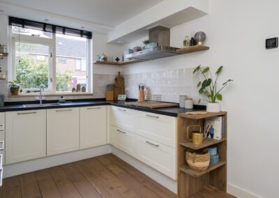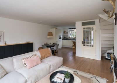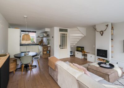 Deze tussenwoning is in de periode van 2020-2022 grotendeels gemoderniseerd. Er is een complete inbouwkeuken geïnstalleerd, nieuwe groepen meterkast, zolder volledig vernieuwd met een groot dakkapel en zelfs aan de trapopgang en stucwerk is aandacht besteed. Op de verdiepingen zijn er 3 goede slaapkamers en een nette badkamer. Een 4e slaapkamer kan eventueel op de zolder gerealiseerd worden. De zonnige achtertuin is gelegen op het westen en is voorzien van een berging en een achterom. In 2021 is er een overkapping van Douglas hout geplaatst. Kortom, een heerlijk comfortabel huis met stijlvolle afwerking!