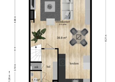 – Eiken vloer begane grond geschuurd en gebeitst.