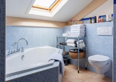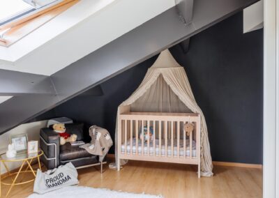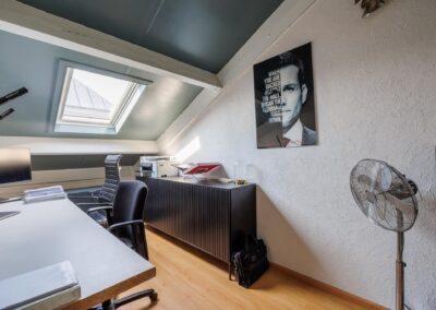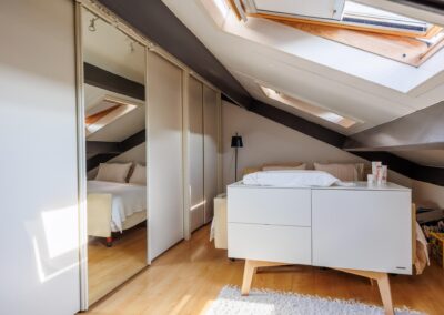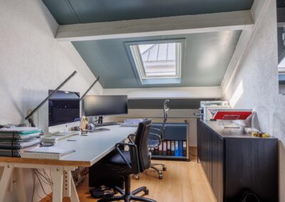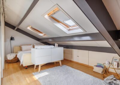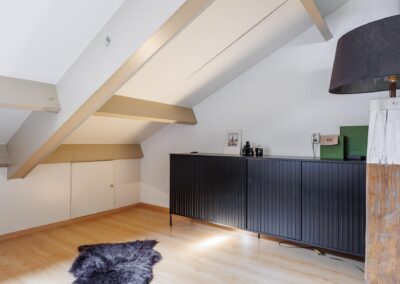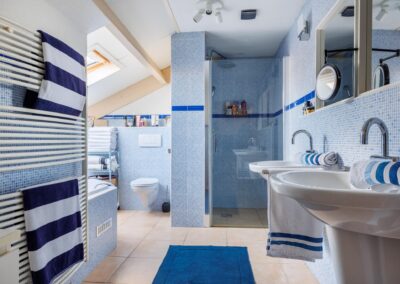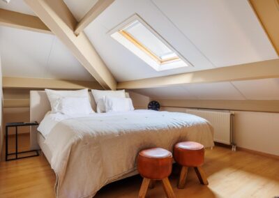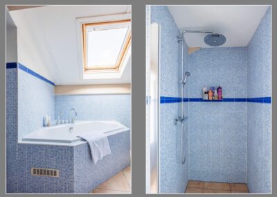 Overloop met in totaal 3 slaapkamers. Deze verdieping heeft meerdere dakramen. Berging. De badkamer is voorzien van een bubbelbad, inloopdouche, dubbele wastafel en toilet.