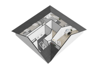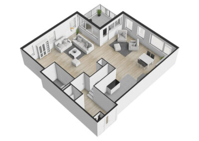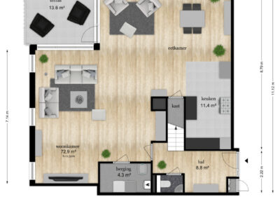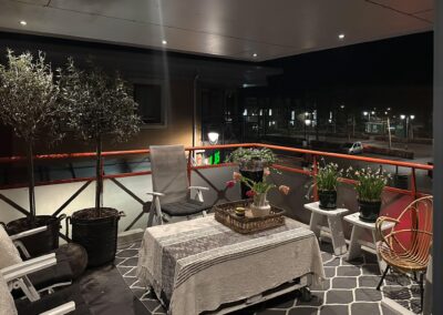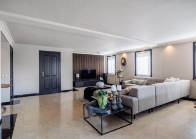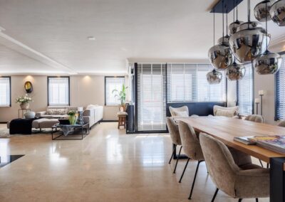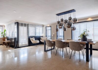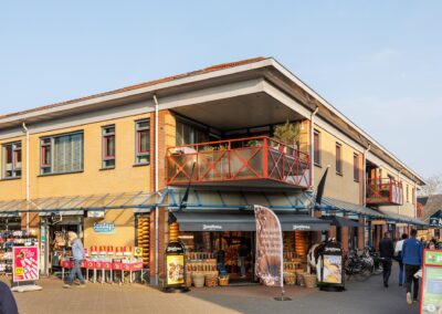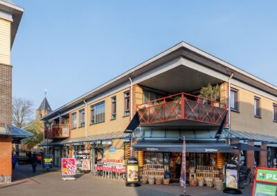 De prachtige living baadt in natuurlijk licht dankzij de vele raampartijen en de hoekligging, wat zorgt voor een open en ruimtelijk gevoel. Op deze woonlaag bevindt zich een grote woonkamer met open keuken. De woonkamer, keuken en hal is voorzien van vloerverwarming. Extra opbergruimte is te vinden in de handige provisieruimte. Het ruime overdekte balkon van circa 14 m² is de ideale plek om in alle rust te genieten van een kopje koffie met uitzicht op het levendige winkelcentrum. Ook is het balkon voorzien van inbouwspots, wat zorgt voor mooie sfeerverlichting in de avonduren.