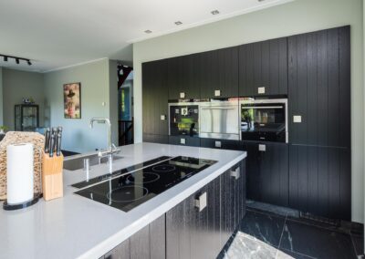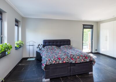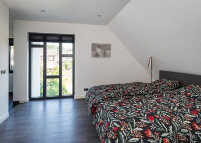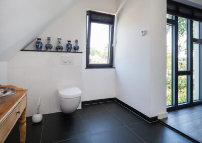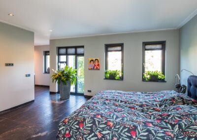 Vanuit het centrale punt loopt u linksaf naar de riante slaapkamer van maar liefst 24,4 m2 met een separate ingerichte ruimte met kledingkasten, vanuit de slaapkamer loopt u de luxe badkamer in, deze is voorzien van een inloopdouche, toiletruimte en een dubbele wastafel. De en-suite badkamer geeft een ruimtelijk effect aan het geheel. Vanuit het centrale ontmoetingspunt loopt u rechts naar de eetkamer en woonkeuken met de luxe en moderne keuken uitgerust met een kookeiland, voorzien van een vaatwasser op hoogte, warmhoudlades, koffieautomaat, stoomoven/ heteluchtoven, geïntrigeerde afzuigkap in het werkblad, inductiekookplaat, Floww cooker en XL-koelkast. De op het zuiden gerichte woonkamer heeft veel lichtinval en is voorzien van een sfeervolle houtkachel.