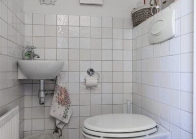 Overloop met vaste kast en toegang tot de 3 slaapkamers, waarvan er 1 een praktische vaste kast heeft, de inpandige badkamer is uitgerust met een ligbad, wastafelmeubel en toilet.