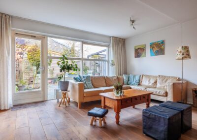 De tuin op het noordwesten geeft volop mogelijkheden voor ontspanning op de mooie dagen en de rustige, groene omgeving maakt deze woning zeer aantrekkelijk. Op korte afstand zijn scholen, parken en winkels te vinden en uitstekende verbindingen met de trein richting Utrecht of Den Bosch.