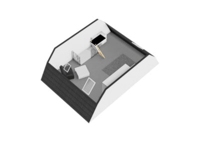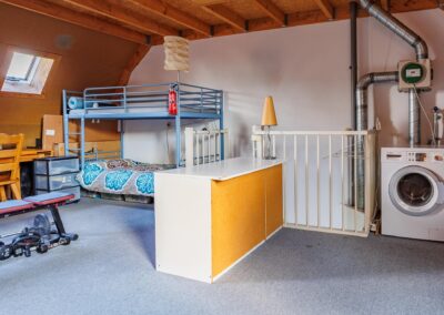 Deze verdieping is een open vrij in te delen ruimte, nu in gebruik als hobby en werk-/logeerruimte. Er zijn 2 dakramen en er is ruimte voor een wasmachine en/of droger. Een multifunctionele verdieping met mogelijkheid tot 2 slaapkamers.