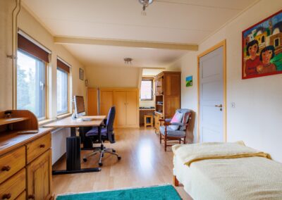 • Bijgebouw met eigen ingang, 2 kamers, keuken en badkamer. Vele opties mogelijk zoals praktijk aan huis of mantelzorg;