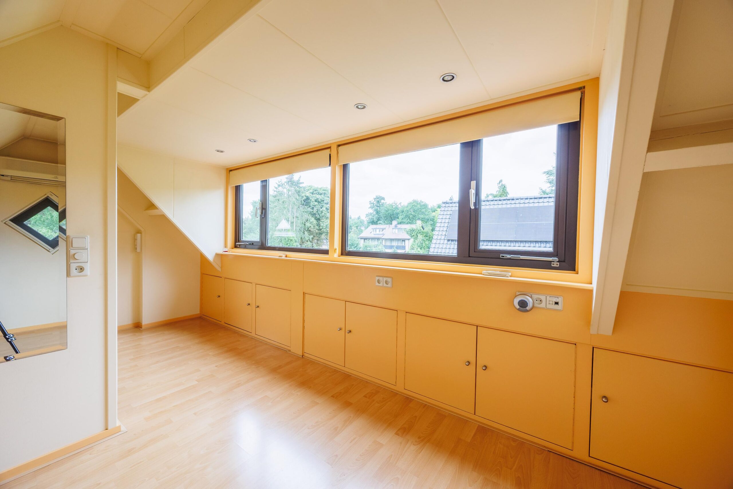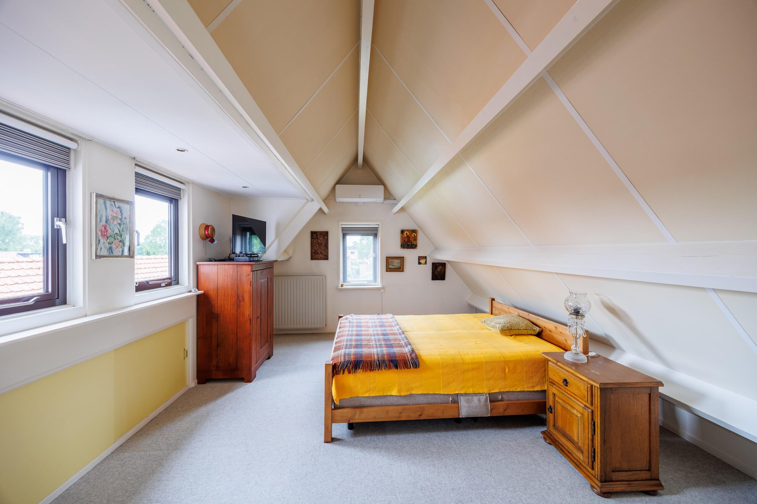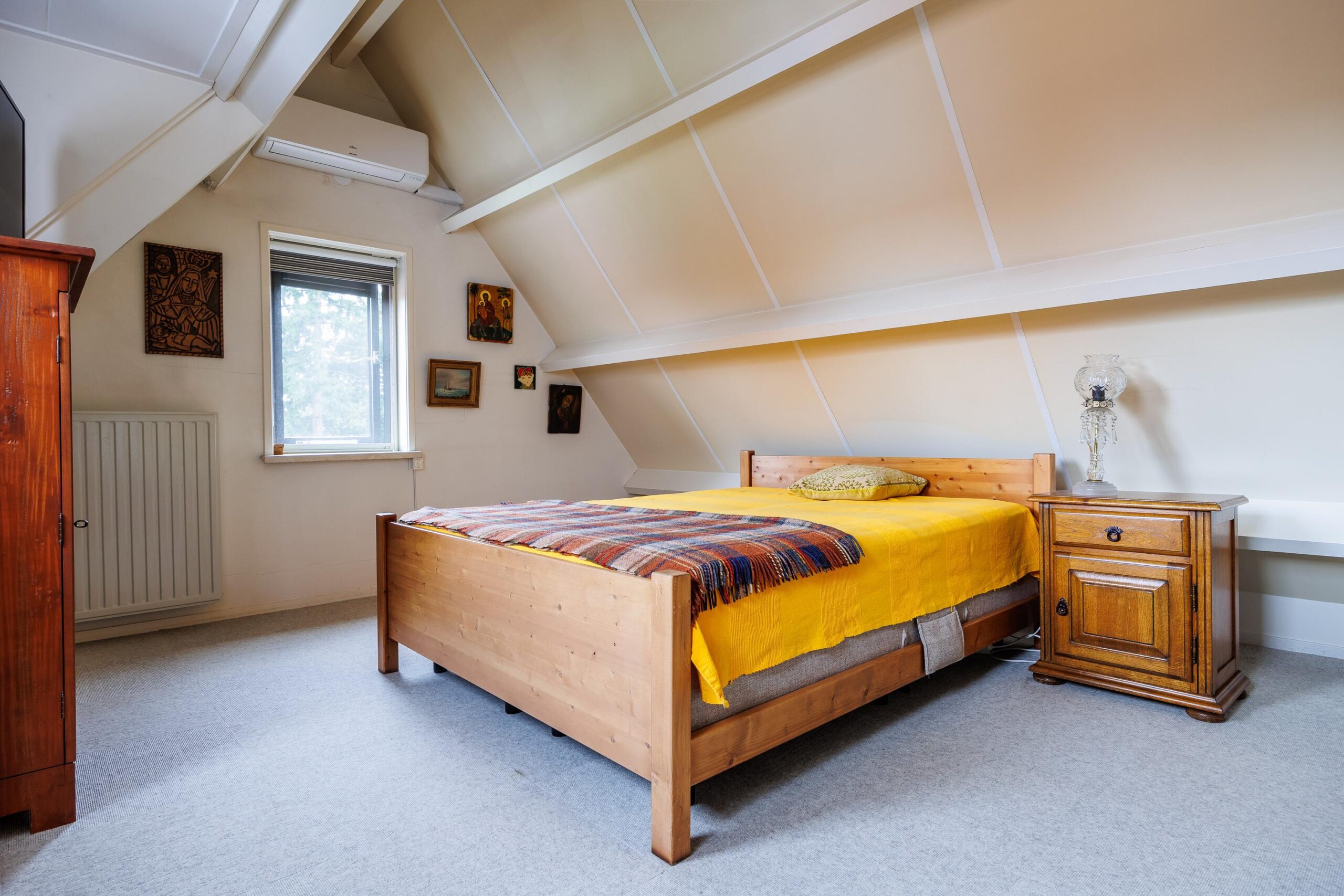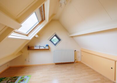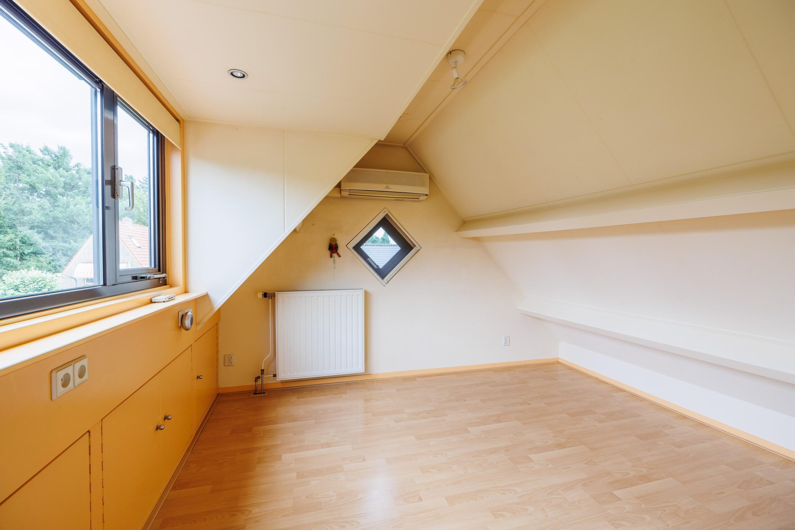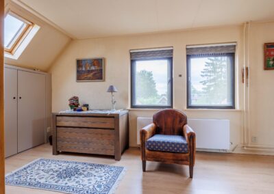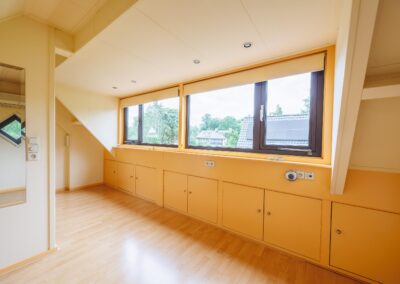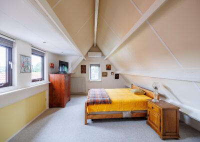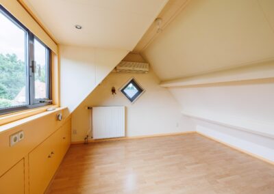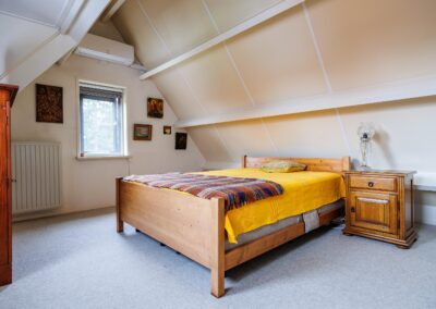Tweede verdieping: Via vaste trap naar 2e verdieping, grote ruimte met 4e slaapkamer en inbouwkasten, voorzien van airconditioning.
