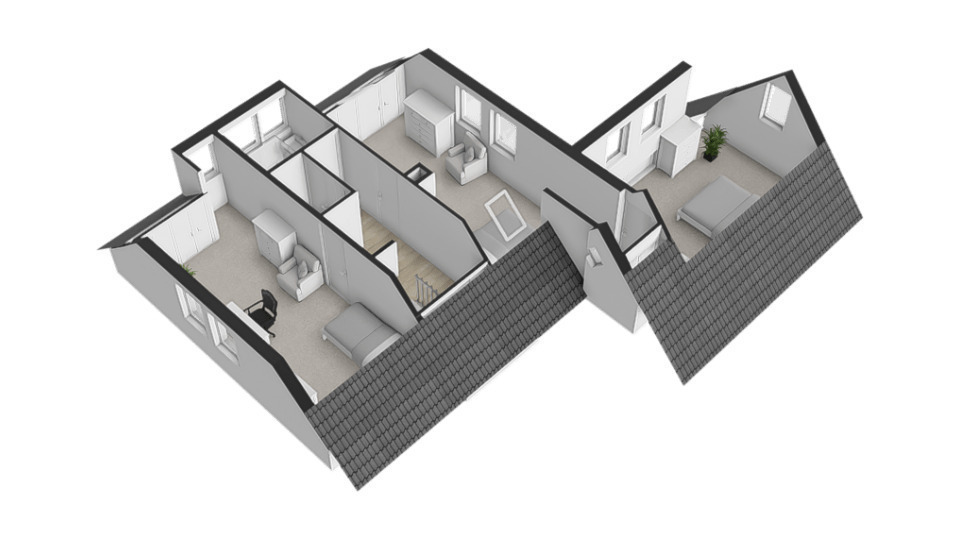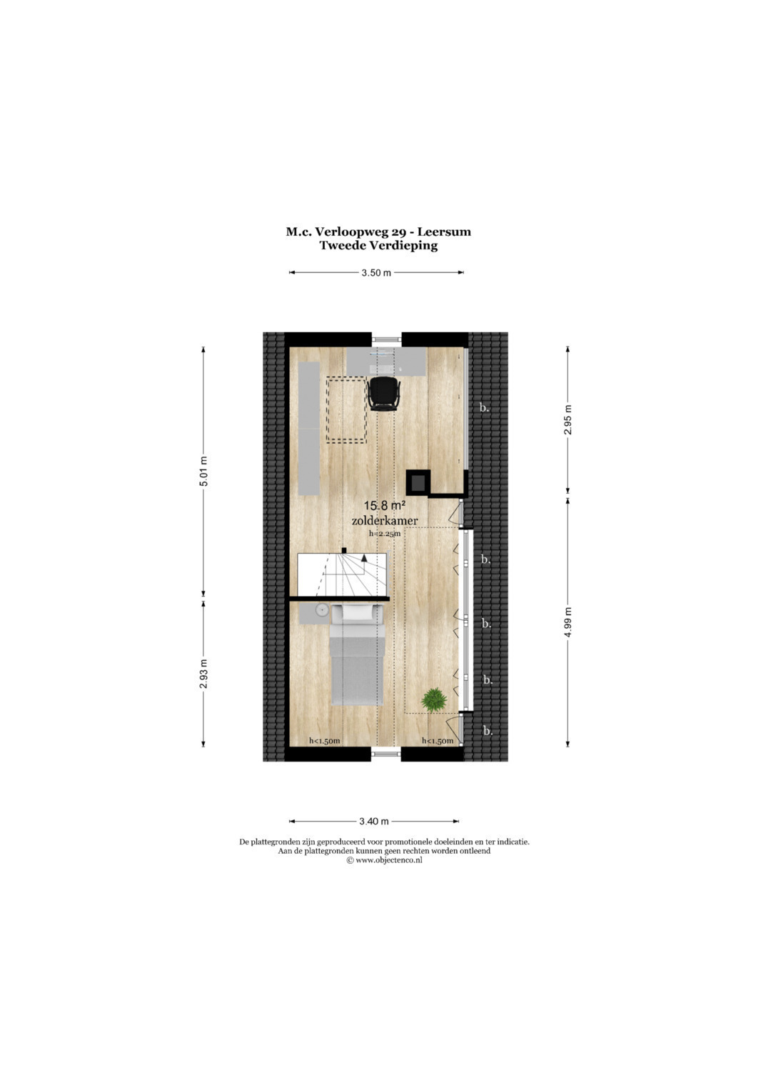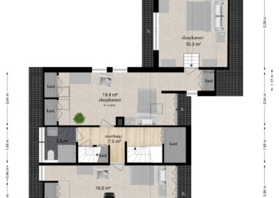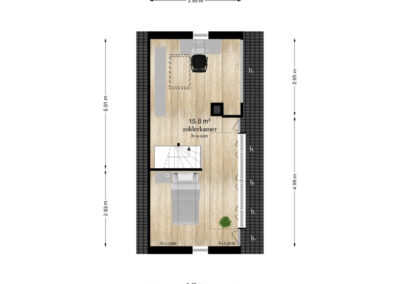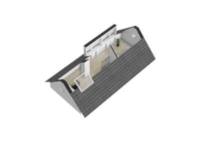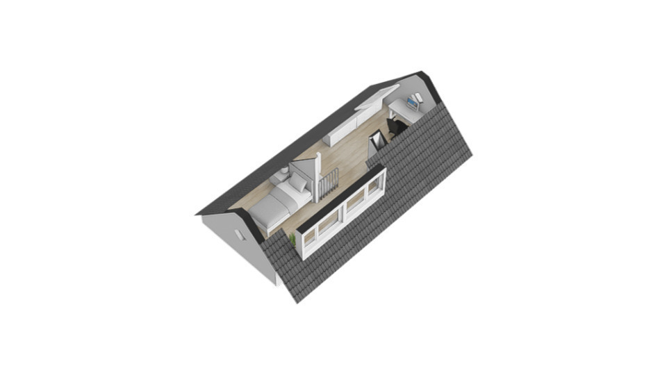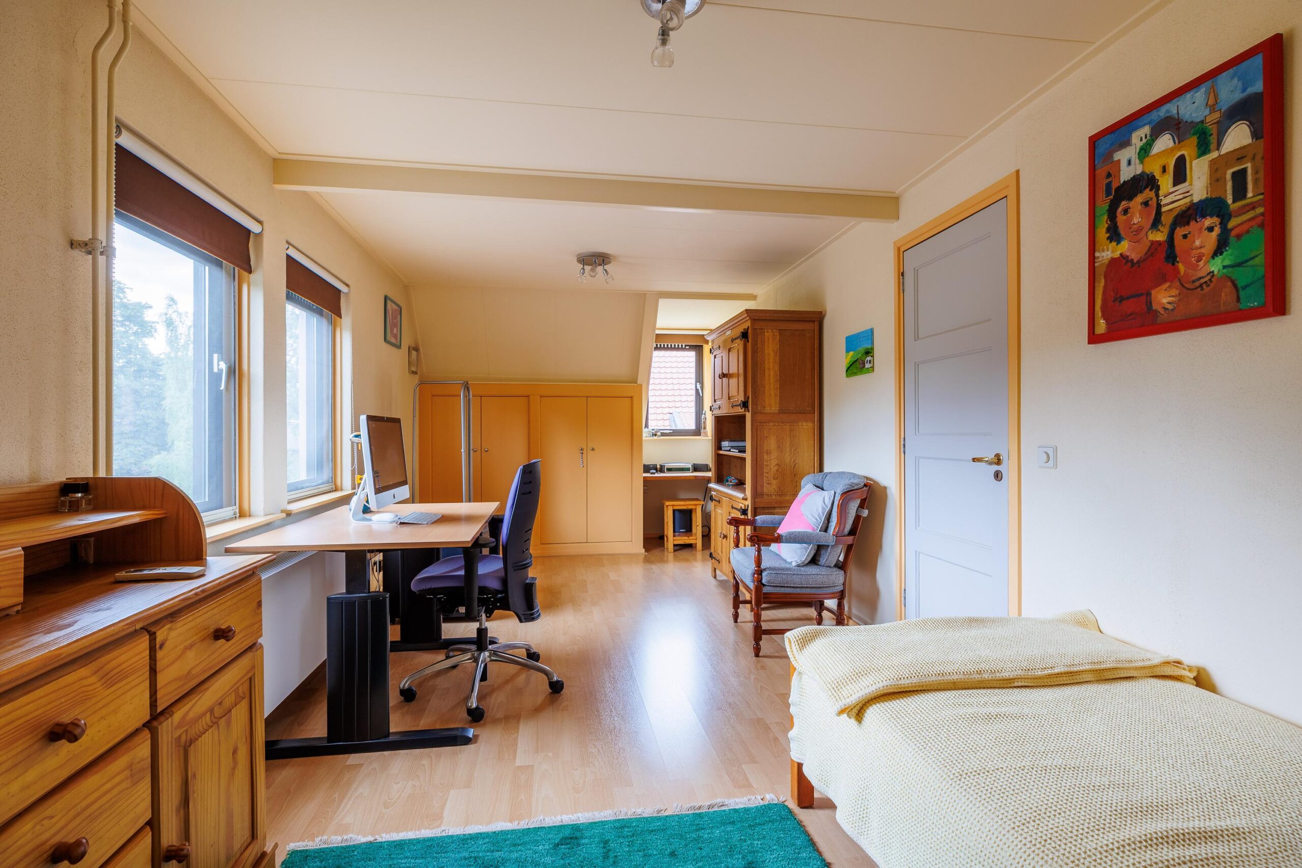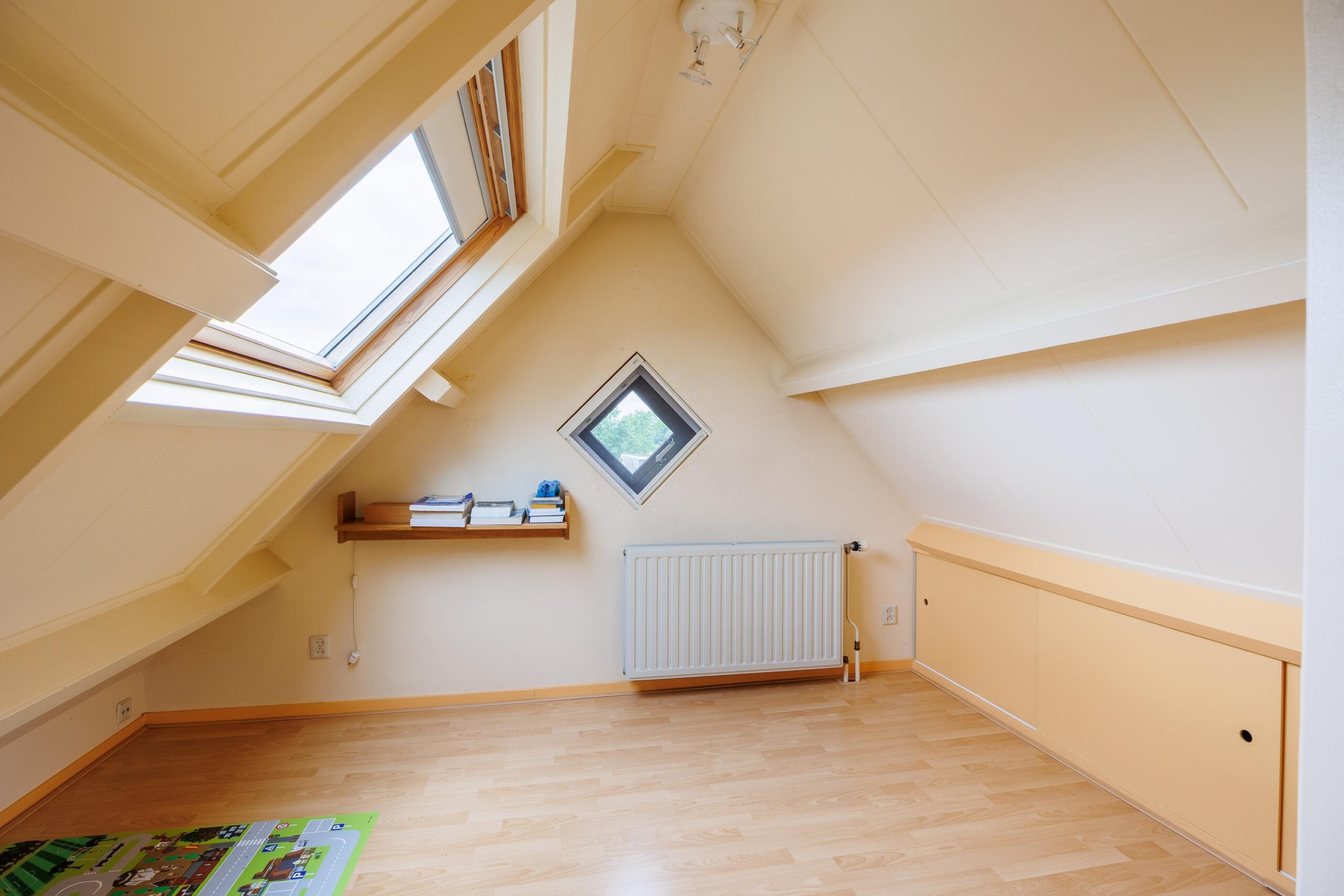 Tweede verdieping: Via vaste trap naar 2e verdieping, grote ruimte met 4e slaapkamer en inbouwkasten, voorzien van airconditioning.