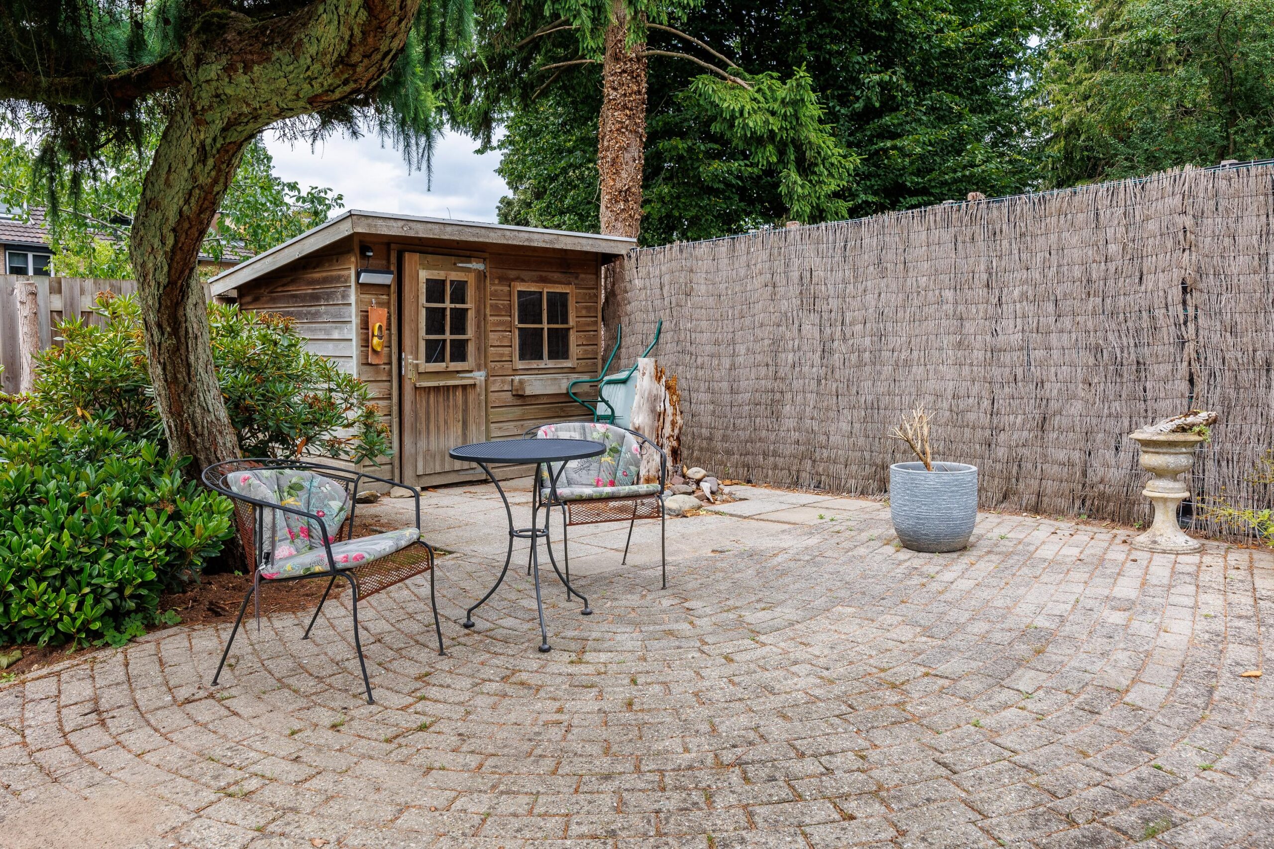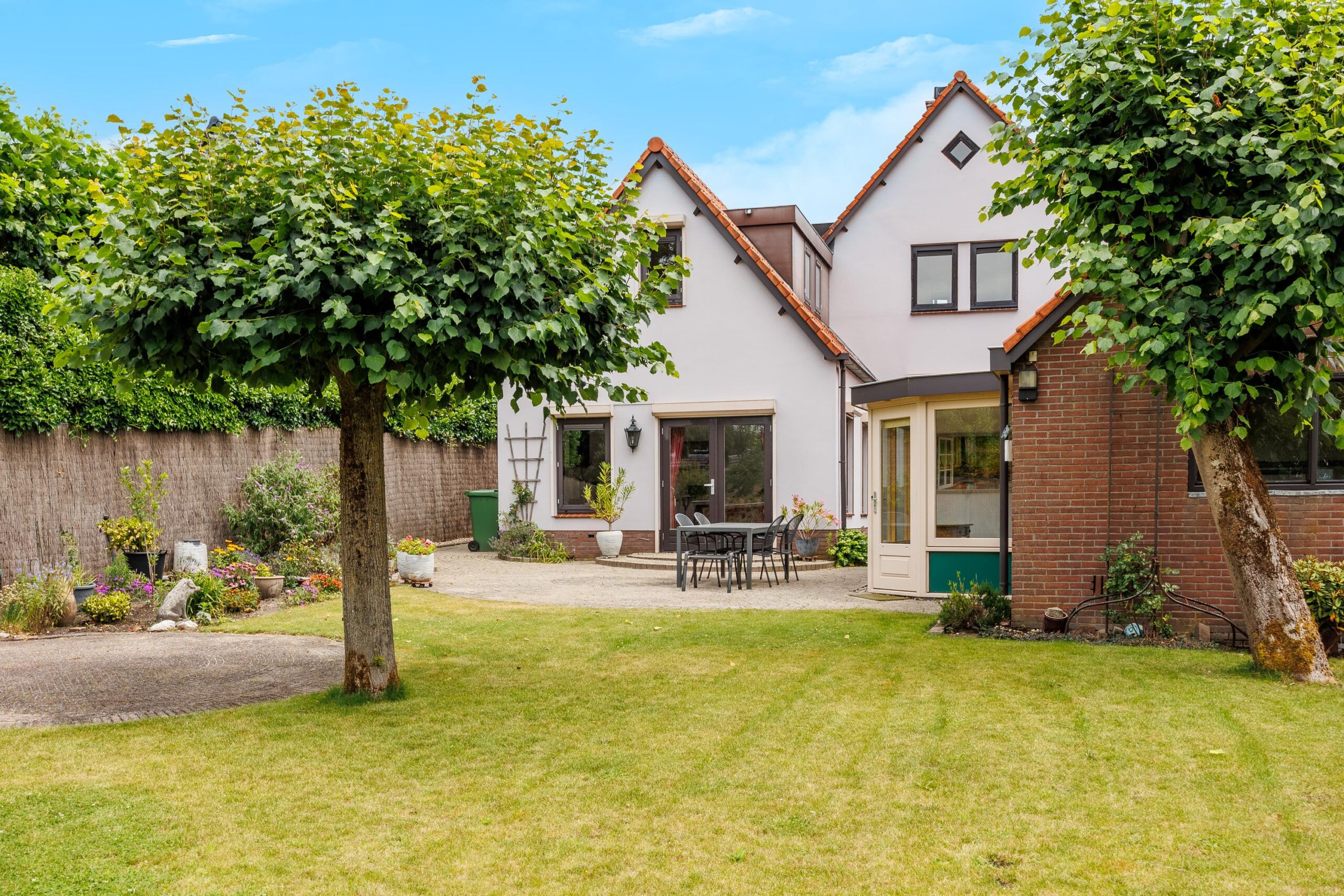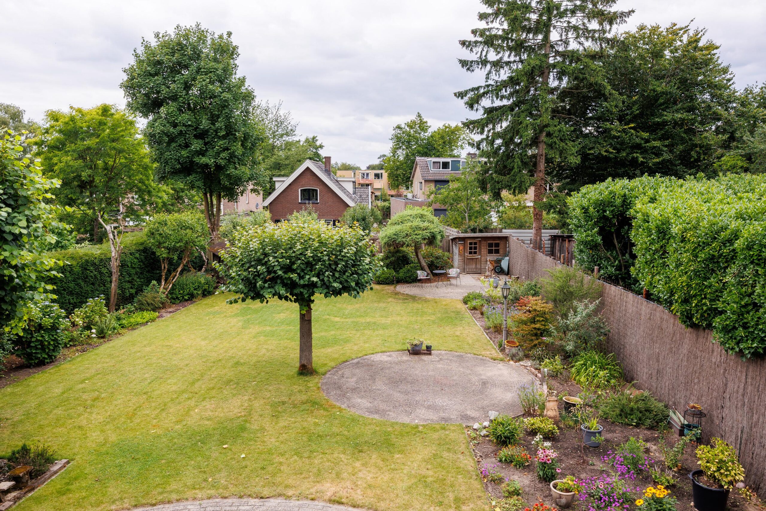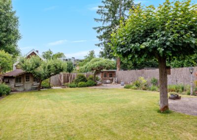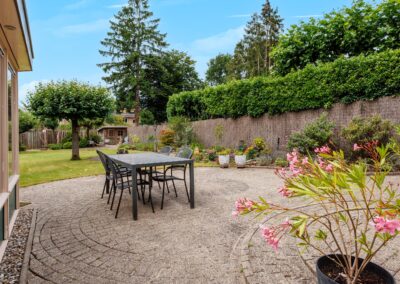 De royale tuin is een waar groen paradijs: ruim opgezet gazon, met meerdere zitjes in zowel zon- als schaduwplekken die volop privacy bieden. Hier kun je in alle rust genieten van het buitenleven. In de tuin zijn ook nog twee vrijstaande houten bergingen te vinden, ideaal om tuinkussens of tuingereedschap in op te bergen. De tuin is voorzien van een beregeningsinstallatie.