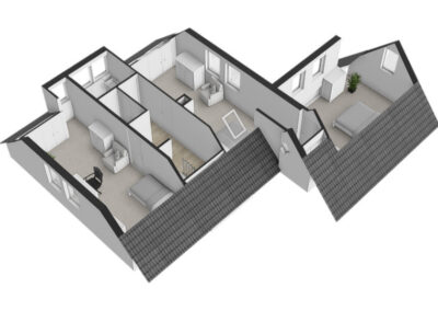 Op de eerste etage zijn 3 slaapkamers te vinden, allemaal uitgerust met inbouwkasten en airconditioning. Één van de slaapkamers op deze etage is te bereiken met een speelse trap. Ook is op deze etage een badkamer aanwezig, uitgerust met een douche, wastafel en toilet. De tweede verdieping is een grote ruimte die als 4e slaapkamer gebruikt kan worden, tevens voorzien van inbouwkasten en diverse airconditionings.