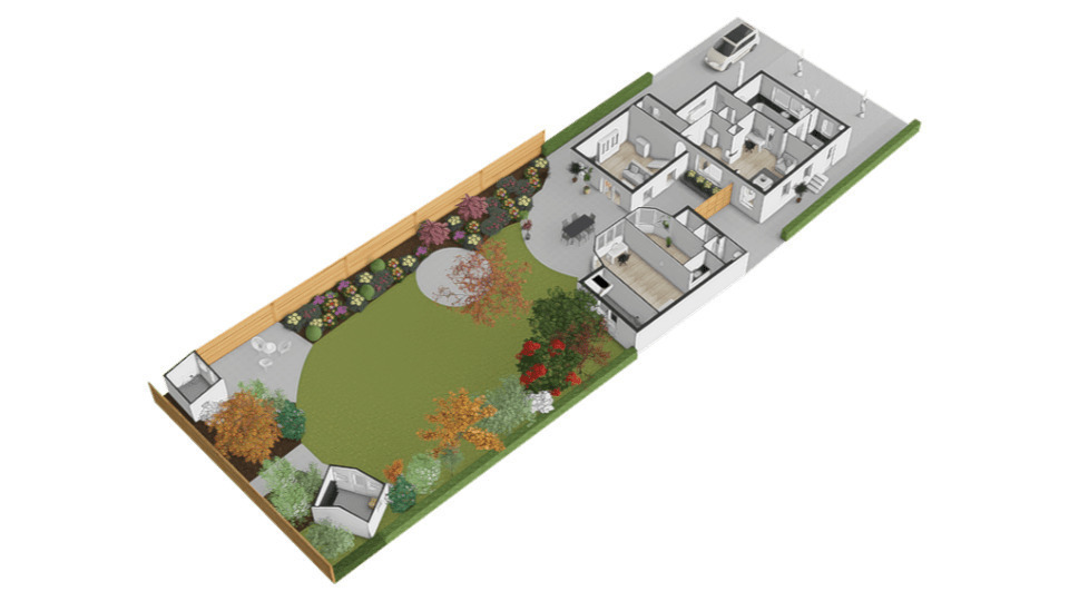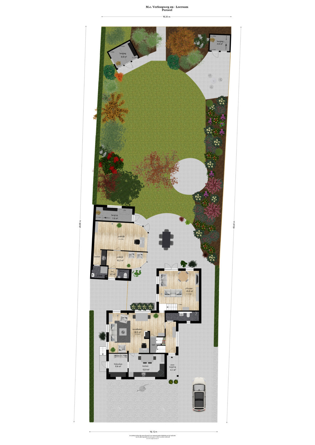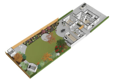 • De tuin is voorzien van een beregeningsinstallatie;