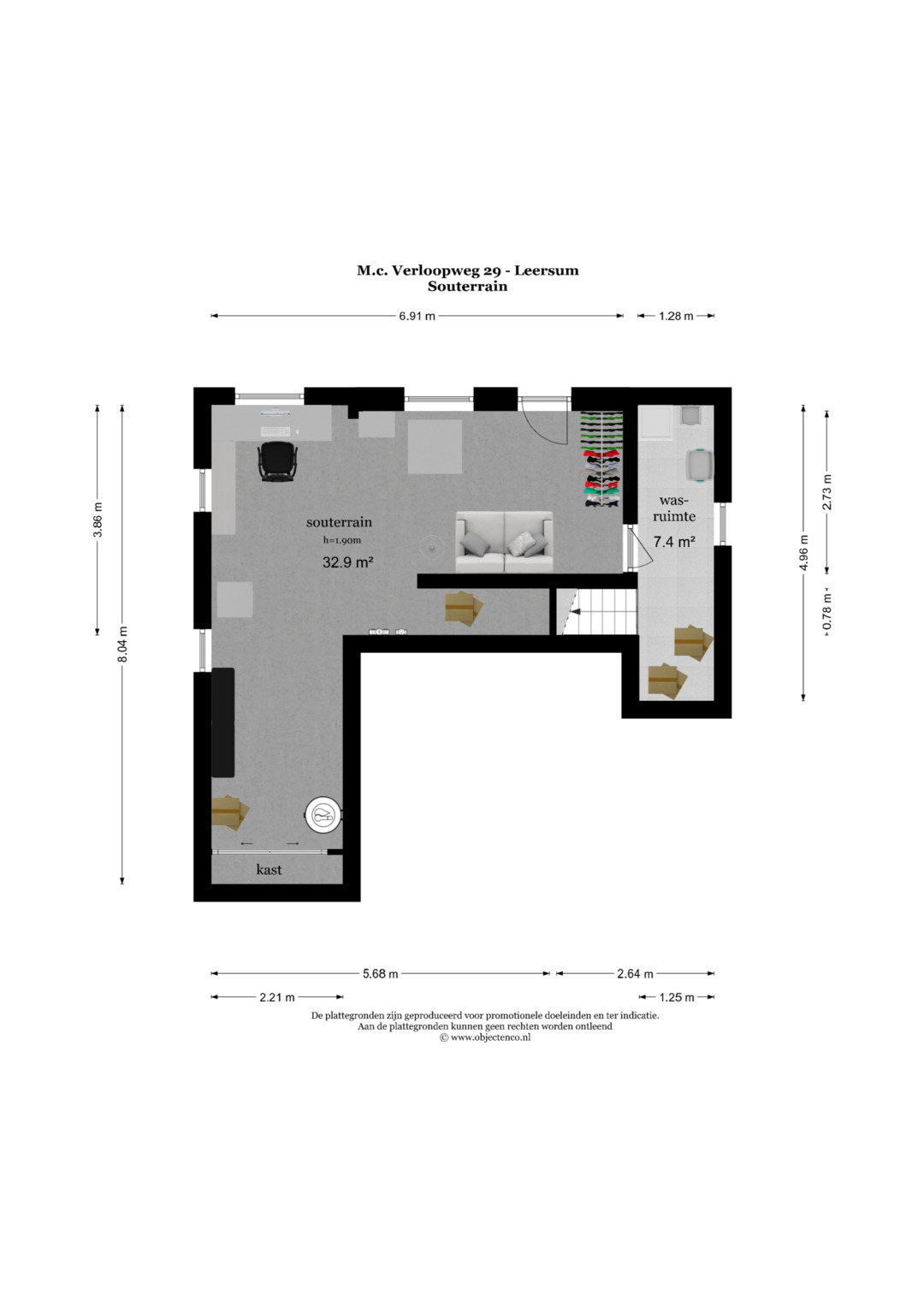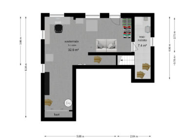 Souterrain: Via een vaste trap toegang tot het souterrain, wasruimte met was- en droogaansluiting en werkruimte. Stookruimte met hybride warmtepomp.