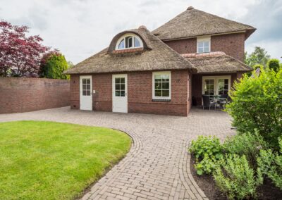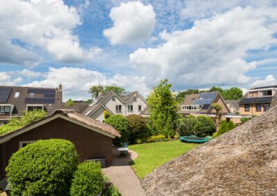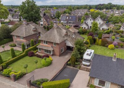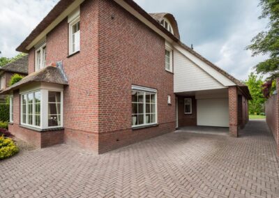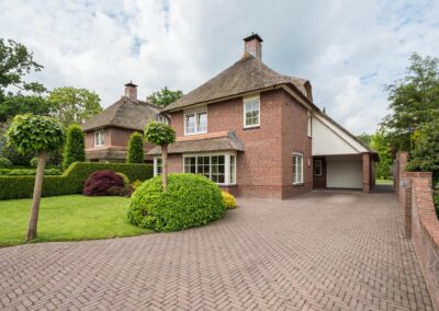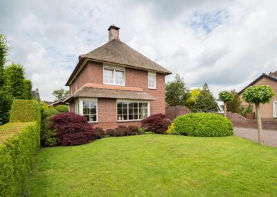 Deze fraaie, onder architectuur gebouwde, villa met rieten kap bevat onder andere 6 slaapkamers, ruime parkeergelegenheid voor meerdere auto's op eigen terrein (zelfs achterom bereikbaar met de auto) en een carport. Het is een perceel van maar liefst 905 m2! De ligging is zeer geliefd, midden in het centrum van Woudenberg met alle voorzieningen op loopafstand. Heerlijk in privacy genieten in de groene tuin of onder de veranda met een kop koffie, een gebakje van de bakker om de hoek en de fluitende vogels op de achtergrond.