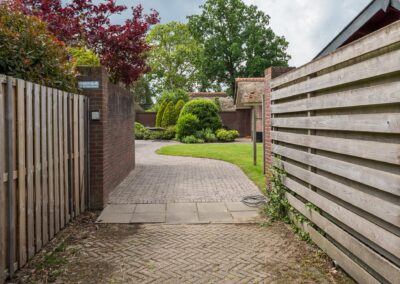 – Rondom een stenen tuinmuur, voor luxe hekwerk met poort.
