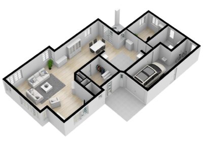 Het woonhuis heeft een inpandige garage. Achter in de tuin is staat een vrijstaand gebouw nu ingericht als gastenverblijf, ook perfect voor een kantoor, mantelzorg of praktijk aan huis in dezelfde karakteristieke stijl als het woonhuis gebouwd.