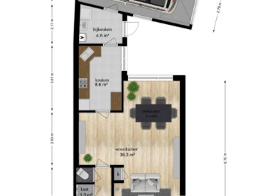 – Praktische bijkeuken met wasmachine- en drogeraansluiting.