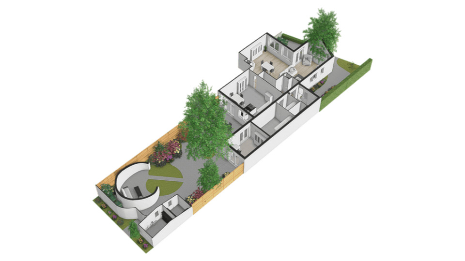 Het huis heeft een speelse indeling met een ruime living met aangebouwde tuinkamer, een ruime leefkeuken met bijkeuken en aansluitend een slaapkamer met grote berging op de begane grond. Op de 1e verdieping bevinden zich 3 ruime slaapkamers en een badkamer. De achtertuin is fraai aangelegd en aan de voorzijde is er de mogelijkheid om parkeergelegenheid op eigen terrein te realiseren.