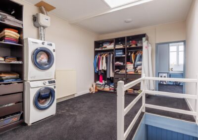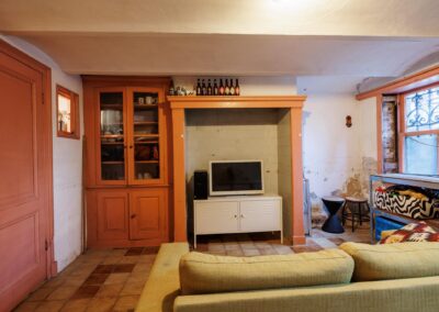 Het multifunctionele souterrain is na enkele aanpassingen uitstekend geschikt voor eventueel werken-aan-huis of Bed & Breakfast.