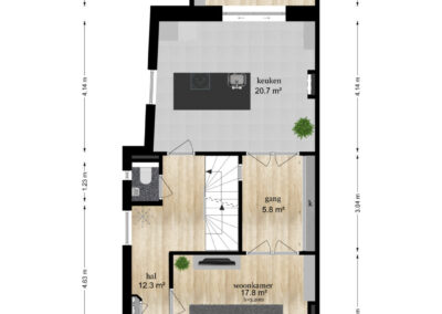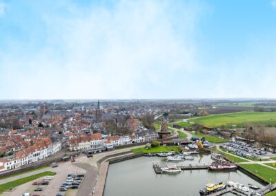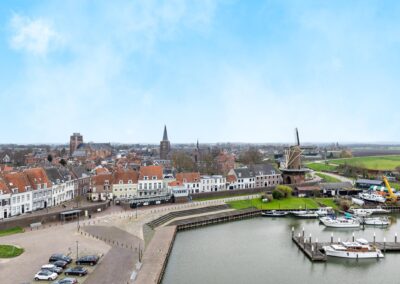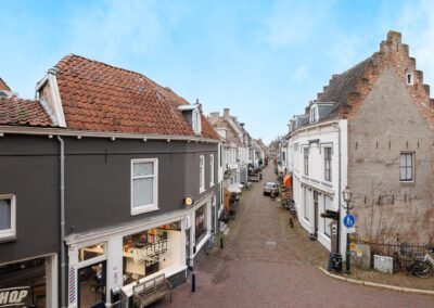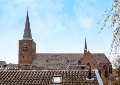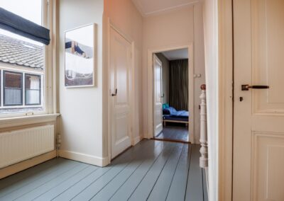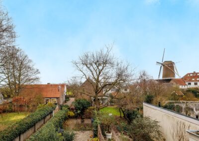 Begane grond: ENTREE met 5 treden naar het woonniveau, de begane grond met een markante voordeur, ruime ontvangsthal met hoog plafond, originele granitovloer en marmerlook geschilderde lambrisering. De hal heeft een prachtige trapopgang naar de andere woonlagen. Voorts is er in de hal een moderne toiletruime en meterkast aanwezig. De hal brengt je naar de knusse woonkamer/voorkamer met hogen raampartij en schouw. Vanuit deze woonkamer prachtig zicht op de historische Peperstraat met gezellige winkeltjes. In halfopen verbinding met deze woonkamer is een tussenruimte met vaste kasten de toegang naar de stijlvolle woonkeuken met aangebouwde serre/eetkamer. De luxe keuken is voorzien van alle gemakken, zoals Quooker, inductiekookplaat met geïntegreerde afzuiging, combi-oven, koelkast en vaatwasser. De totale leefruimte is 54,2 m² (woon-/eetkamer en keuken gezamenlijk). Vanuit de eetkamer/serre is de achtertuin toegankelijk. Een fraai aangelegde stadstuin van circa 18,5 meter diep met diverse soorten groen, meerdere plekken om ’s zomers heerlijk in de zon- of juist in de schaduw te genieten en een fraai zicht op de molen en de kerk. Middels een poort/achterom is de naastgelegen Wildemansteeg te bereikbaar.