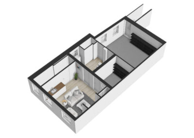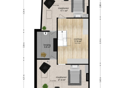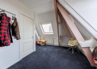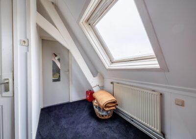 2e Verdieping: middels vaste trap bereikbare 2e verdieping met ruime overloop voorzien van lichtkoepel en ruimte voor het witgoed. Vanaf de overloop toegang naar 2 ruime slaapkamers van circa 21 en 17 m², beide met kleine dakkapel en een dakraam. Vanaf beide kamers is een inloopkast/berging/stookruimte te bereiken met de opstelling van de c.v.-ketel.