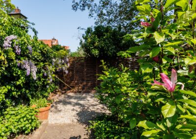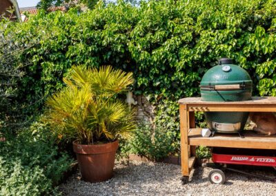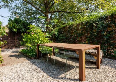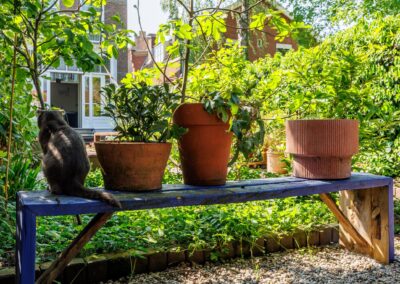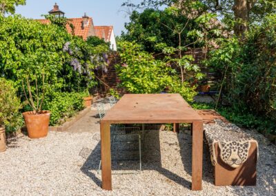 – Vanaf de achtertuin is het souterrain apart bereikbaar, ideaal geschikt voor eventueel werken aan huis Bed & Breakfast of inpandige berging.