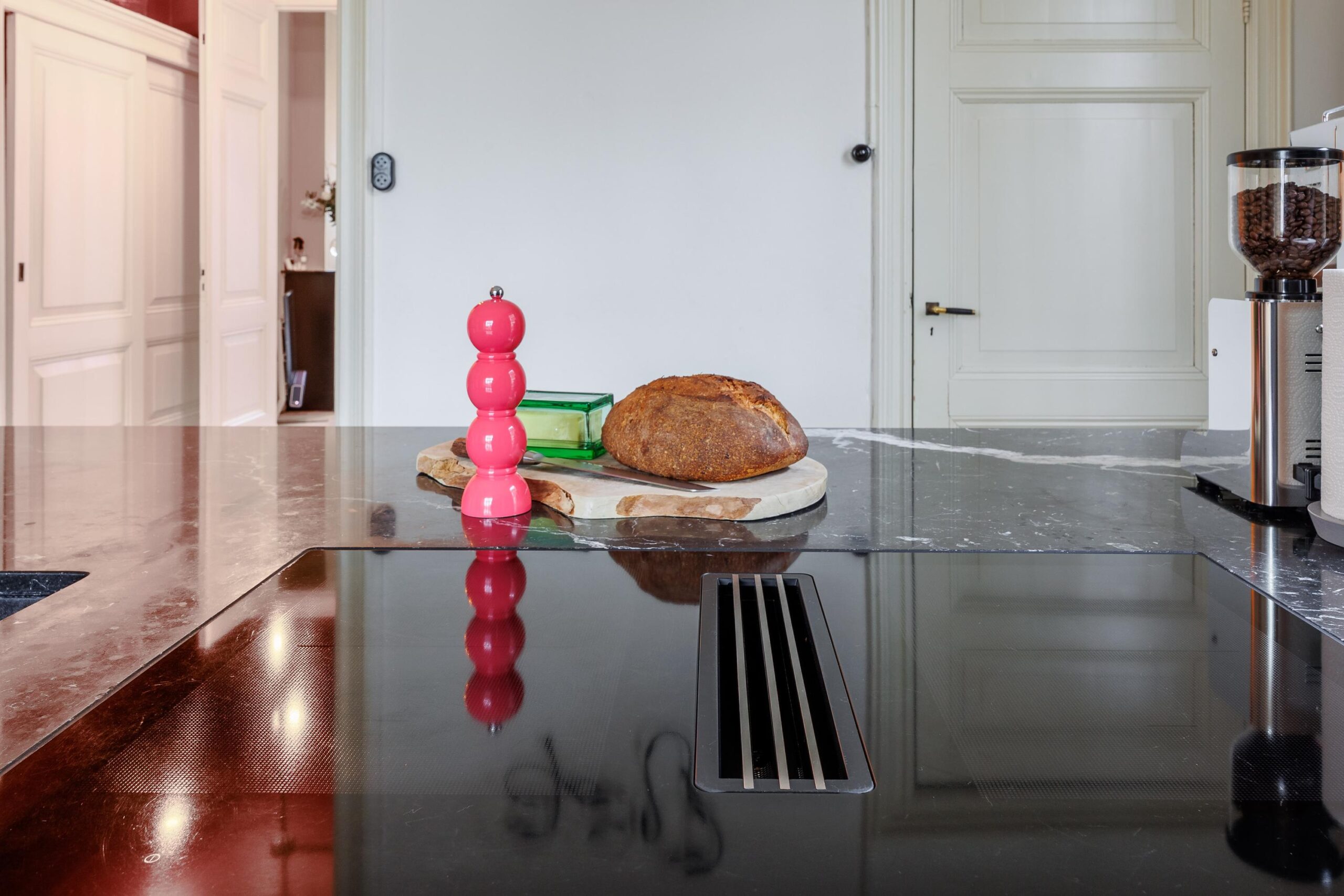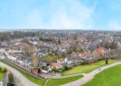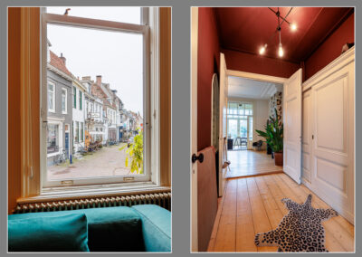 Begane grond: ENTREE met 5 treden naar het woonniveau, de begane grond met een markante voordeur, ruime ontvangsthal met hoog plafond, originele granitovloer en marmerlook geschilderde lambrisering. De hal heeft een prachtige trapopgang naar de andere woonlagen. Voorts is er in de hal een moderne toiletruime en meterkast aanwezig. De hal brengt je naar de knusse woonkamer/voorkamer met hogen raampartij en schouw. Vanuit deze woonkamer prachtig zicht op de historische Peperstraat met gezellige winkeltjes. In halfopen verbinding met deze woonkamer is een tussenruimte met vaste kasten de toegang naar de stijlvolle woonkeuken met aangebouwde serre/eetkamer. De luxe keuken is voorzien van alle gemakken, zoals Quooker, inductiekookplaat met geïntegreerde afzuiging, combi-oven, koelkast en vaatwasser. De totale leefruimte is 54,2 m² (woon-/eetkamer en keuken gezamenlijk). Vanuit de eetkamer/serre is de achtertuin toegankelijk. Een fraai aangelegde stadstuin van circa 18,5 meter diep met diverse soorten groen, meerdere plekken om ’s zomers heerlijk in de zon- of juist in de schaduw te genieten en een fraai zicht op de molen en de kerk. Middels een poort/achterom is de naastgelegen Wildemansteeg te bereikbaar.
