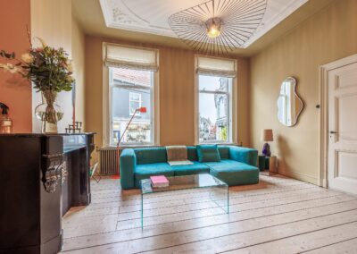 Omstreeks 1898 is dit prachtige herenhuis gesticht. De woning is te herkennen aan de originele kenmerken en materialen zoals die in die tijd werden gebruikt: het hoge plafond in de vertrekken op de begane grond, de hoge raampartij, de granitovloer in de hal, het glas-in-lood, de karakteristieke trapopgang en een fraaie gevel met muurankers. Het geheel is tussen 2020 en 2023 met veel zorg en passie stijlvol verbouwd, met onder andere een luxe keuken, moderne badkamer en toiletruimtes, fraai stucwerk en bijpassende kleurstellingen.