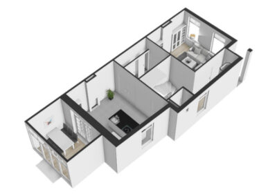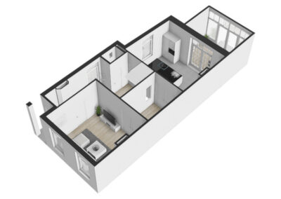 2e Verdieping: middels vaste trap bereikbare 2e verdieping met ruime overloop voorzien van lichtkoepel en ruimte voor het witgoed. Vanaf de overloop toegang naar 2 ruime slaapkamers van circa 21 en 17 m², beide met kleine dakkapel en een dakraam. Vanaf beide kamers is een inloopkast/berging/stookruimte te bereiken met de opstelling van de c.v.-ketel.