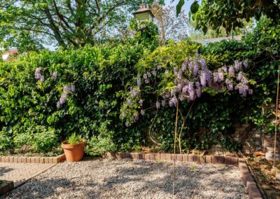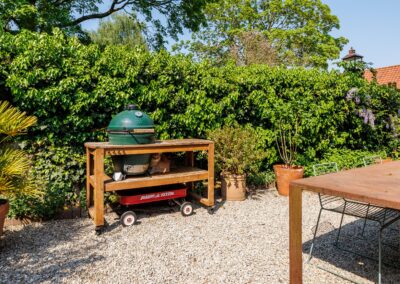 – Vanaf de achtertuin is het souterrain apart bereikbaar, ideaal geschikt voor eventueel werken aan huis Bed & Breakfast of inpandige berging.