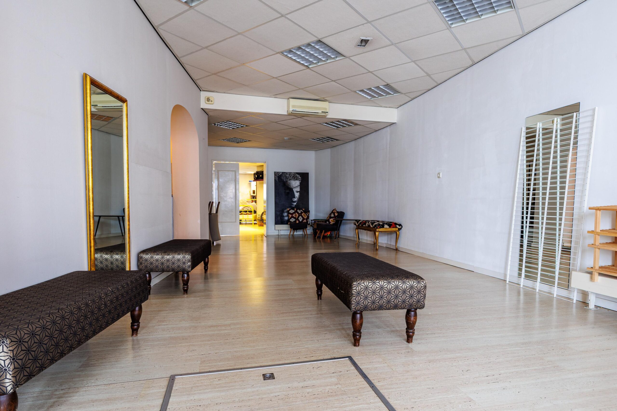 Begane grond: Via de prachtige, karakteristieke gevel betreed je ENTREE van de winkelruimte aan de voorzijde van het pand. Het eerste gedeelte van de winkel ligt iets lager dan het achtergelegen deel, wat zorgt voor een speelse indeling en een natuurlijke scheiding tussen bijvoorbeeld presentatieruimte en ontvangstruimte.