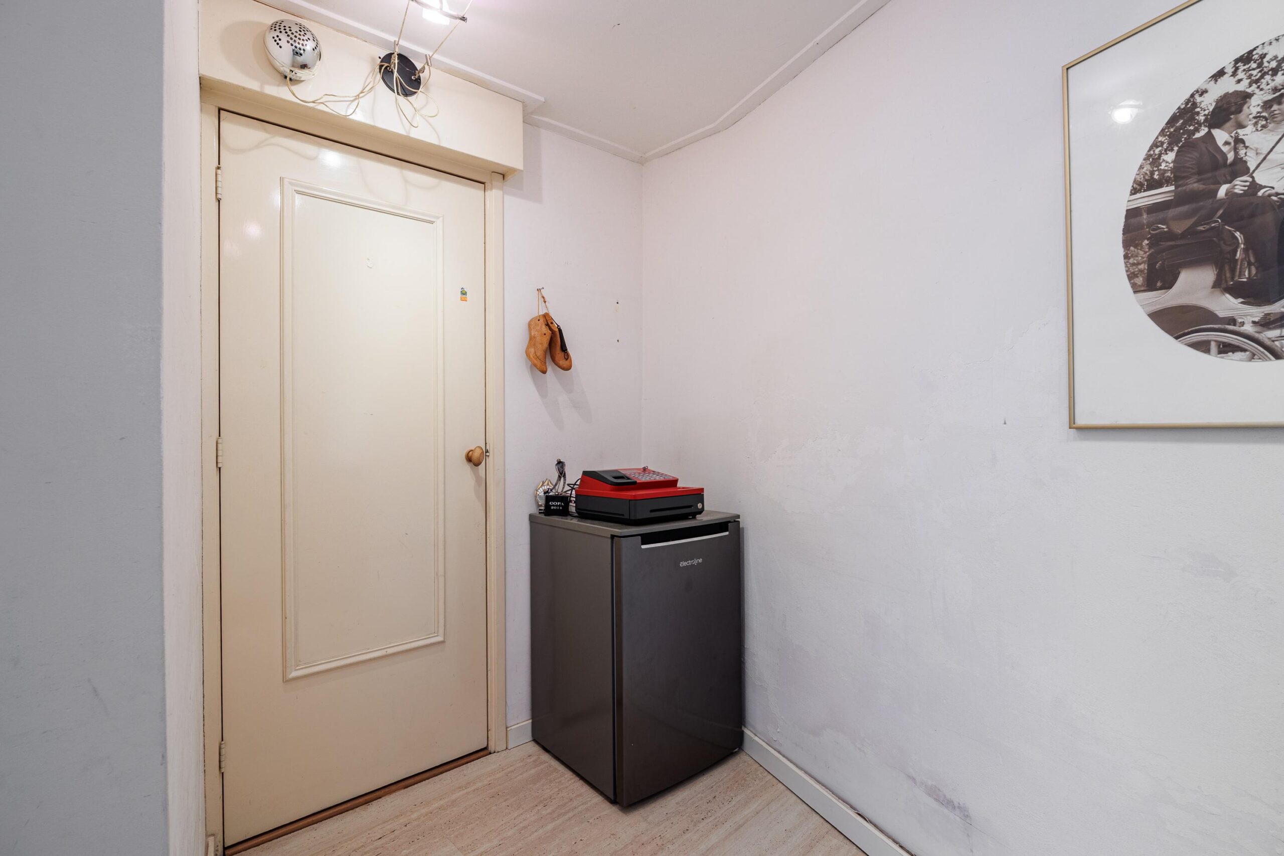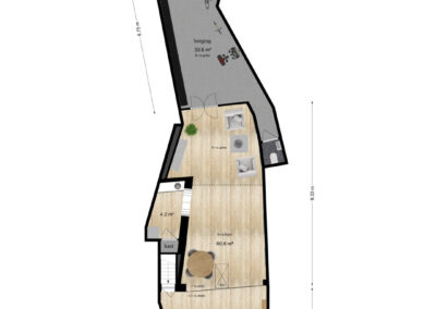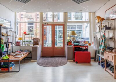 Middels een kleine opstap van één traptrede bereik je het hoger gelegen deel van de winkel. De totale winkelruimte beslaat 61 m² en biedt volop mogelijkheden voor uiteenlopende doeleinden. Dankzij de authentieke uitstraling in combinatie met de praktische indeling is dit een aantrekkelijke ruimte voor wie een zicht locatie zoekt met karakter.
